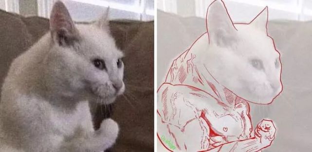 网友脑洞大开 猫咪和柴犬的萌照经过二次元改编 秒变筋肉猛男 猫咪 柴犬